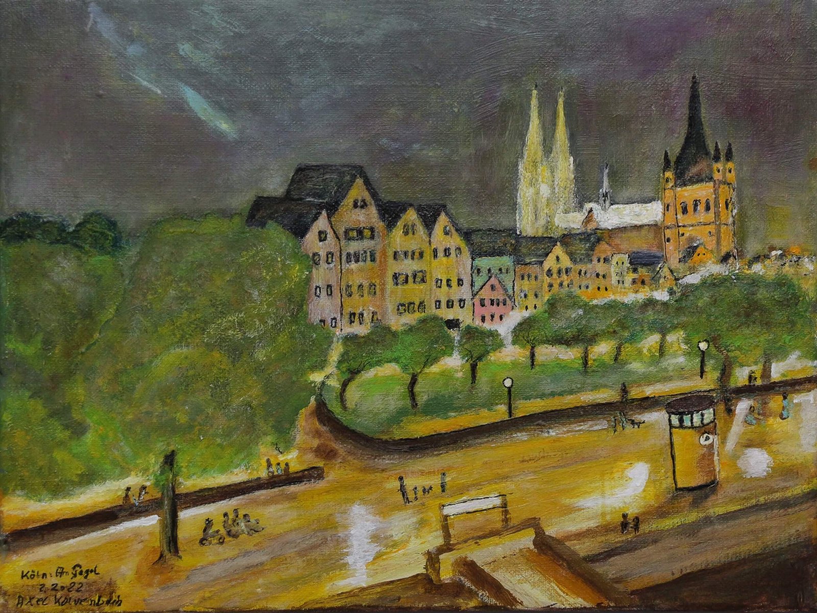 Die Bilder der Werkgruppe „Köln“ zeigen die Stadt als Schwellenraum, in dem Vergangenheit, Gegenwart und Verwandlung ineinander übergehen. So wird Köln zu einem vibrierenden Panorama, das zugleich persönlich und universell erfahrbar ist – ein Ort, der in Farbe Gestalt gewinnt und über sich selbst hinausweist.