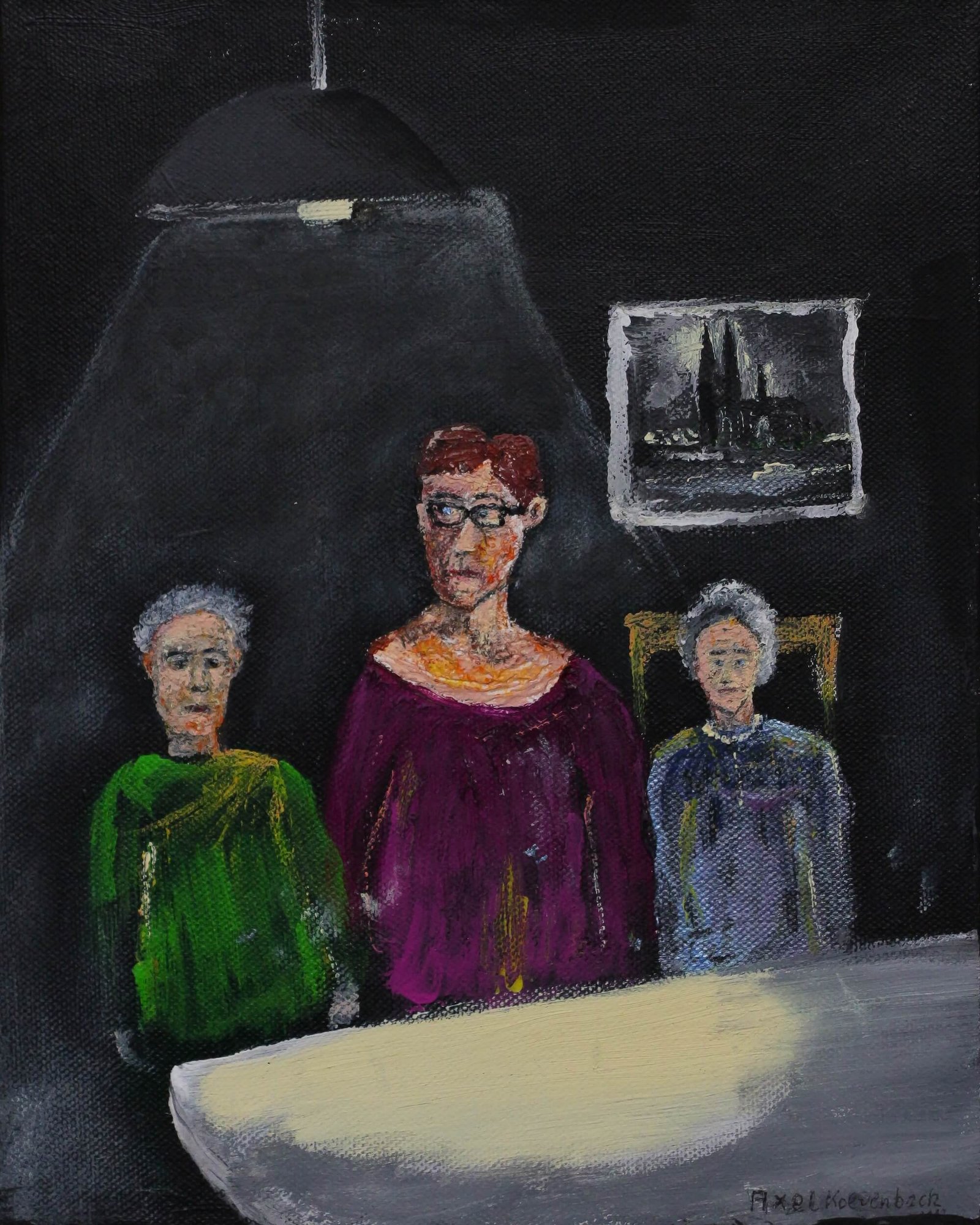 In den Porträts von Axel Kolvenbach geht es nicht um Abbild oder Ähnlichkeit. Die Leinwand wird hier zu einem Übergang, an der sich das Äußere in das Innere verkehrt. Nicht das glatte Antlitz, nicht die gefällige Schönheit, sondern die Verdichtung von Ausdruck und Stimmung sind die eigentliche Substanz seiner Malerei.